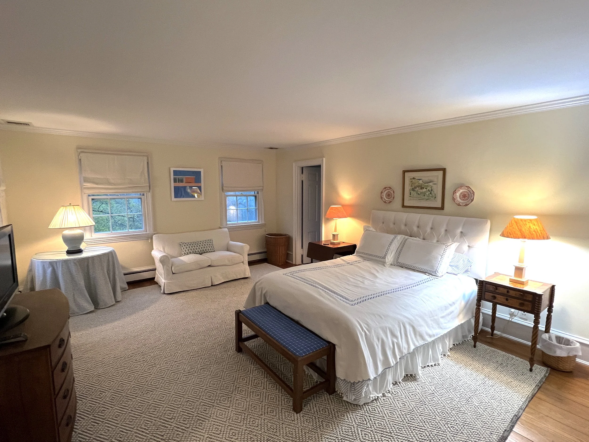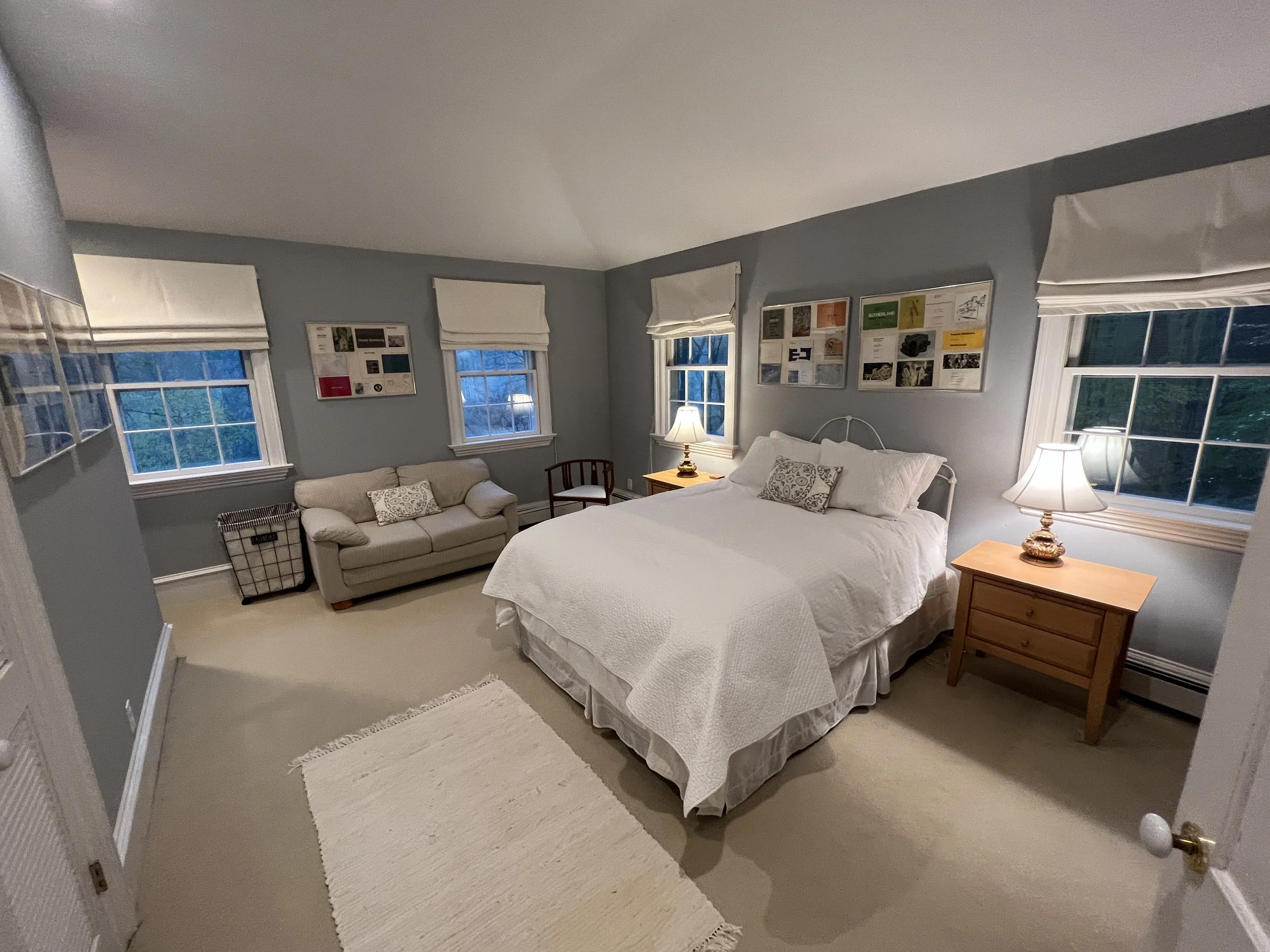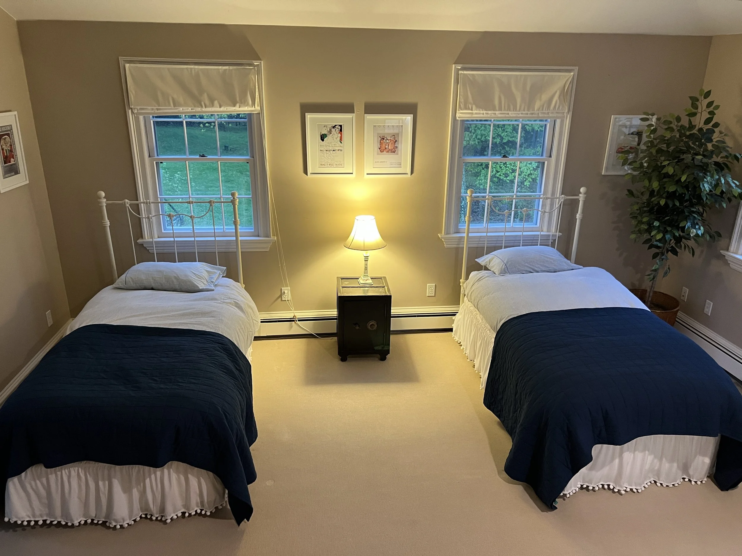 The Hockney Room (named for the Hockey prints on the walls) is the only bedroom without a private bath, it is attached by door to the master. The bathroom is 10 paces away down the hall, shared with the floral room.